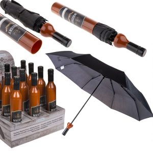 Elegancka parasolka w etui w kształcie butelki whiskey. Nietypowy wzór sprawi, że każdy zwróci na nią uwagę. Poręczne etui idealnie sprawdzi się w damskiej torebce, a także męskiej teczce. Średnica po rozłożeniu parasola to 90 cm. Prezy zakupie 12 sztuk display gratis.