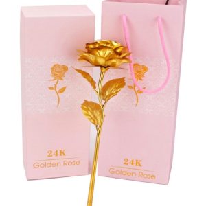 Wieczna róża w kolorze złotym. W komplecie z estetycznym pudełkiem oraz torbą prezentową. Doskonały pomysł na walentynki, urodziny lub niecodzienny upominek 🙂